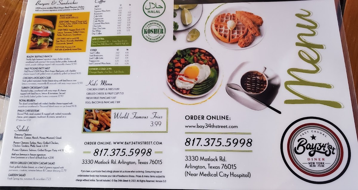Welcome to Bay34th Street Diner, a charming eatery nestled in Arlington, TX. This inviting diner presents a menu that artfully balances classic comfort foods with innovative options. Here, each dish tells a story—from the Chicken Club with grilled chicken breast, turkey bacon, and creamy avocado, to the mouth-watering Philly Cheese Steak, loaded with steak and sautéed vegetables.